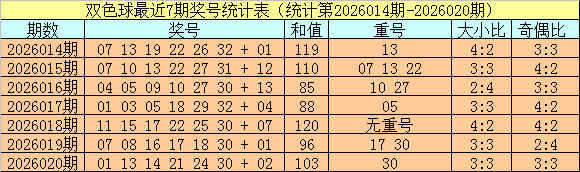 开奖转头:双色球第2026020期奖号为:01 13 14 21 24 30 + 02,红球和值为103,奇偶比为3:3,大小比为3:3。蓝球开出偶数。