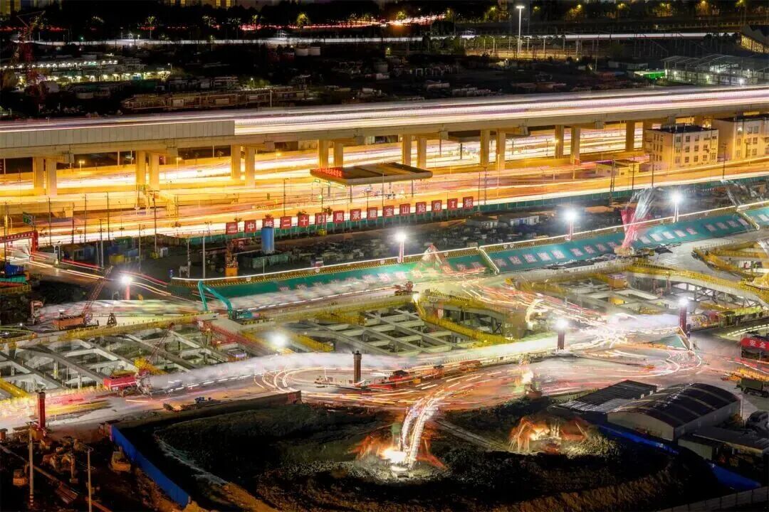 沪渝蓉高铁宝山站施工现场。