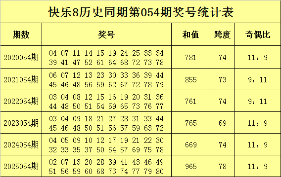 奇偶比分析:旧年第054期奖号奇偶比为11:9,历史同时第054期奖号奇偶总比例为62:58,奇数号码进展较热,本年第054期展望奇偶号码进展与表面基本卓越,保举奇偶比9:11。