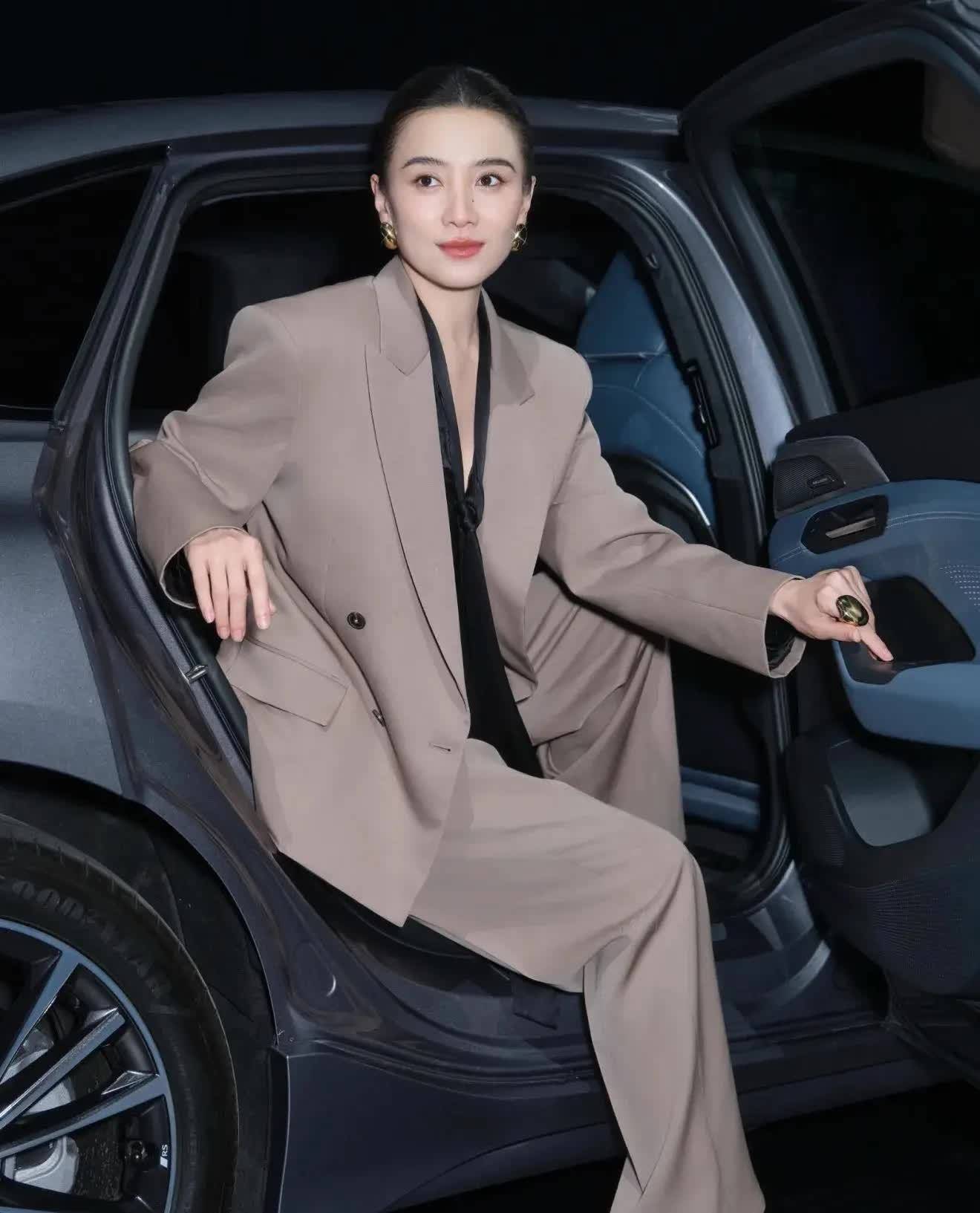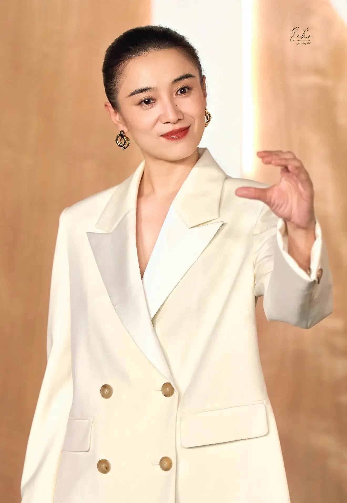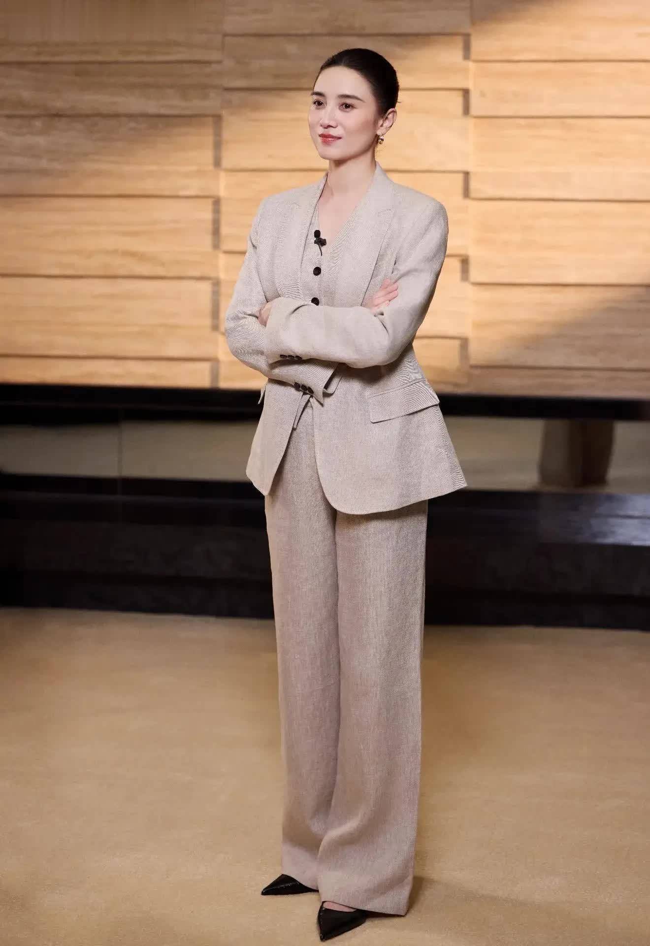 这种纯色系西装她频繁在公众花式穿!除了白色系还有多种配色!比如底下的驼色系,搭配玄色飘带衬衫,骨相好意思的优胜性也很越过!