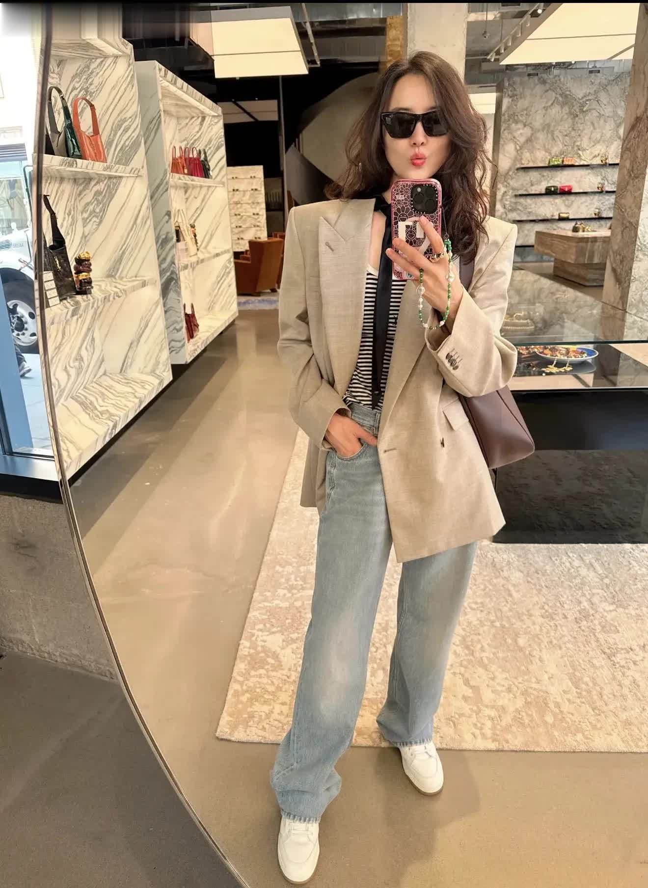 宋佳的西装搭配牛仔裤想路合乎多样神采的西装外衣!搭配小白鞋更失业搭配高跟鞋更女东说念主,幸免穿搭额外。