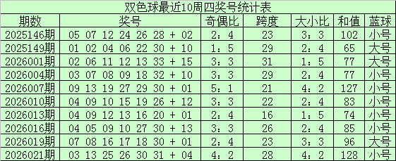 奇偶走势分析:上期开非常偶比为4:2,上周四红球奇偶比4:2,最近十周四偶数红球略占上风,本期看意思意思偶红球均衡出现,选藏奇偶比3:3。