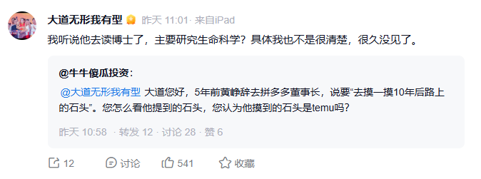 有网友在平台向段永平提问:5年前黄峥离职时,说过要“去摸一摸10年后路上的石头”,这块“石头”是不是跨境电商平台Temu?