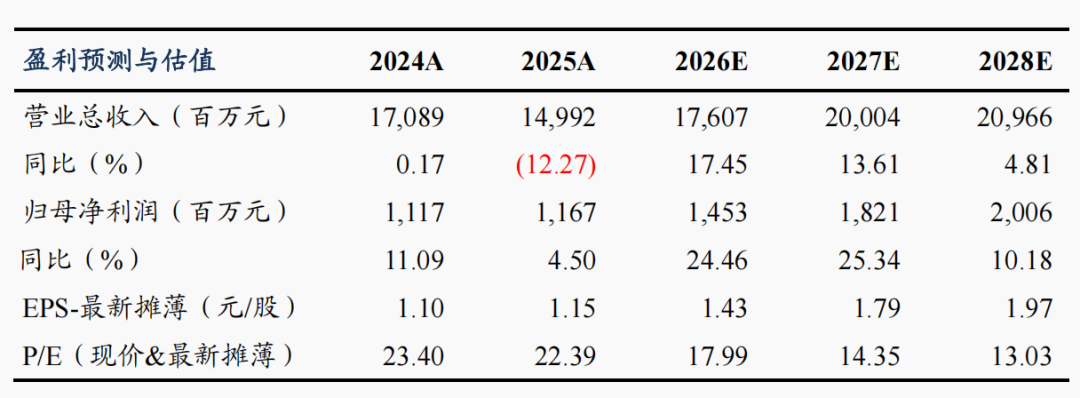 盈利预测与投资评级:探究到降价订单影响,咱们下修公司26-27年归母净利润预测区分为14.5/18.2亿元(此前预测17.1/21.3亿元),新增28年归母净利润预测20.1亿元,同比+24%/25%/10%,现价对应PE区分为18x/14x/13x,探究到公司特高压技俩标高增量,守护“买入”评级。