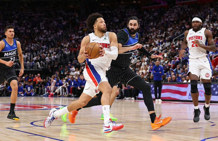 下半场比赛运行,易边再战,哈里斯的中距离瞄筐投篮稳稳掷中,揭开第三节比赛序幕,坎宁安阴灵散步过掉防卫,篮下犹如无东谈主之境轻易得分,哈里斯的前倾小抛投高弧度动手稳稳掷中,汤普森禁区吃饼,双手凌空摘星,重锤暴扣燃烧全场,邓罗又是一记不讲意念念的三分球,长虹贯日,直坠篮心。到下半场场上表情风浪突变,魔术队运行哑火断电,堕入长达4分多种的得分荒,而活塞则是全民王人兵,内突外投样样都有,打出一个23-3的超等报复波实足占据主动权,尽管有萨格斯的小抛投匡助形式稍许止血,然则活塞不给任何契机,火力全开又一波三分雨直下。