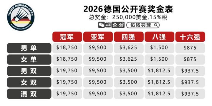 本年的德国公开赛,级别还是Super300(从来岁运行将升级至Super500),比赛时辰为2月24日-3月1日,地方是德国米尔海姆Westenergie Sporthalle。