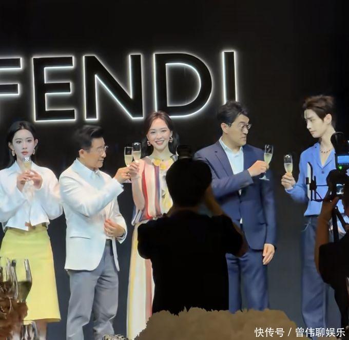 在敬酒的行径中,唐嫣看成品牌的代言东说念主,当然地站在了C位。支配各有品牌的高档科罚东说念主员,他们高举羽觞,向唐嫣献上敬意,而孟子义和何与则隔离站在两侧。