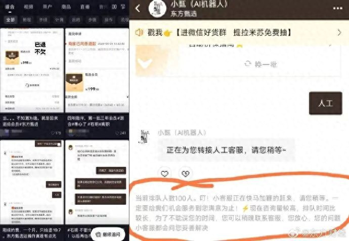 蓝鲸记者当天发现, 社媒上大批用户发文,苦求退出东方甄选会员。 有效户提到退会员是因为主播下野。 随跋文者征询东方甄选客户发现,参谋列队东说念主数提升100东说念主。 后续关于用户退费的问题,客户并未恢复。